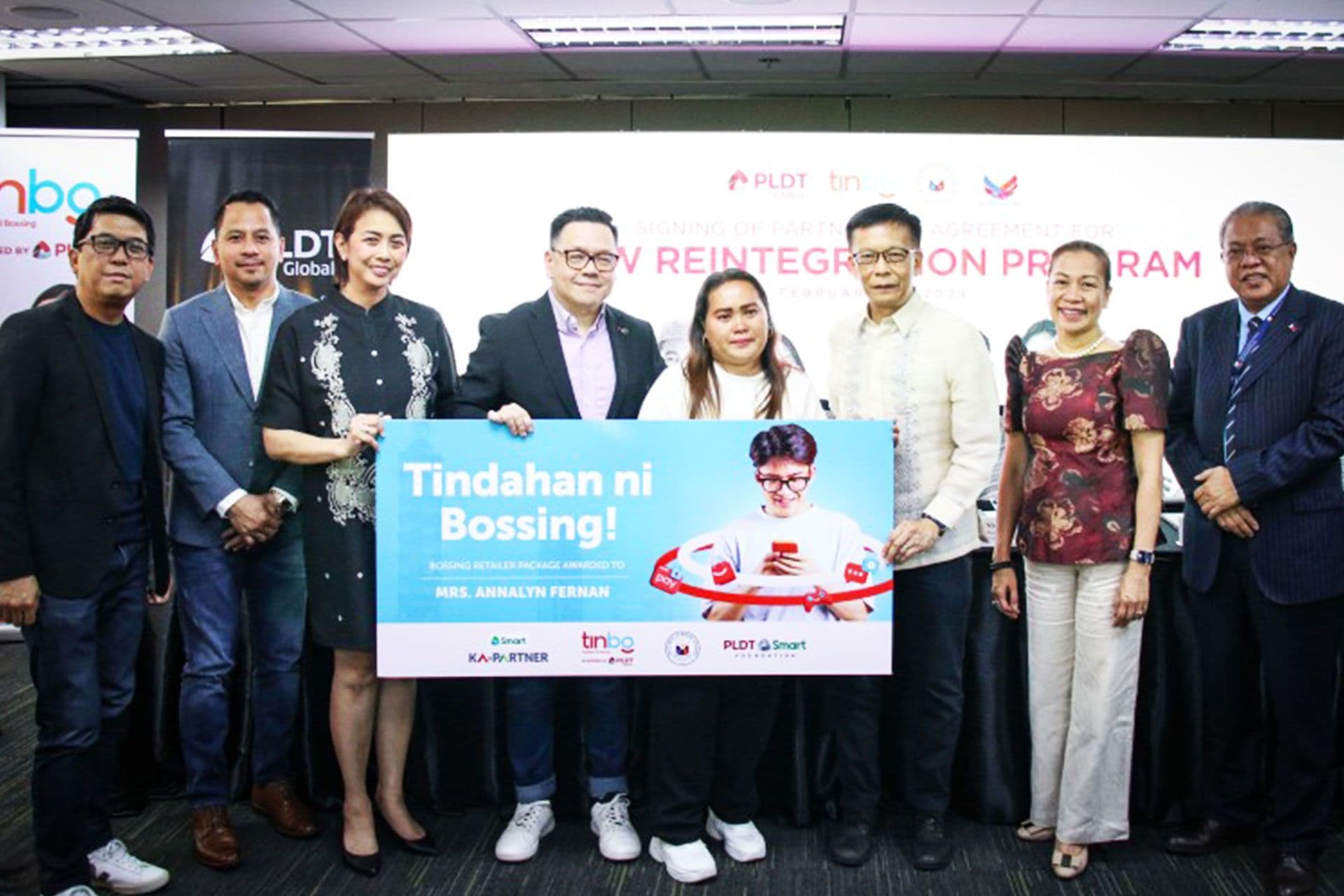 Committed to improving the lives of Filipinos all over the world, PLDT Global Corporation (PLDT Global) and the Department of Migrant Workers (DMW) recently awarded a livelihood package to Annalyn Fernan, a beneficiary of an overseas Filipino worker who passed away in Riyadh, Saudi Arabia last year. With the passing of the family’s breadwinner, Annalyn, now a 37-year-old widow and mother of two, was left with no regular means to support their everyday needs. Over the past year, she’s managed to earn some income by selling rice cakes and processed meat products around their neighborhood in Silang, Cavite. That situation changed recently. With the support of PLDT Global’s OFW Family Livelihood Program, Annalyn will be able to train to own and manage a physical version of TINBO (Tindahan ni Bossing) that will showcase products and services from PLDT, Smart, and other companies under the MVP Group. “This livelihood package comes as a very welcome surprise and will be a big help to our family. This is my first time so I expect to experience some difficulty while I learn how to operate this, but with the training that I have been promised, I will persevere and learn quickly so I can start providing for my family,” Fernan said.